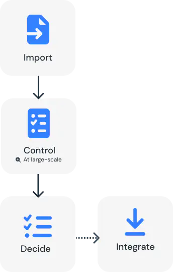 - Contextual checker + specific control grids (model compliance, operating criteria, IT constraints, customer constraints).